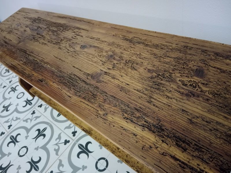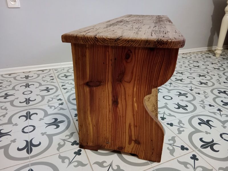 Stará lavička po renovaci. Je olouhovaná, obroušená a navoskovaná speciálním, ekologickým voskem na starý nábytek. Pevná nijak nerozviklaná. Rozměry v. 46 cm, deska š. 116 cm , h. 33 cm.