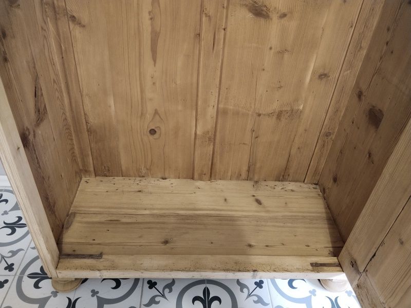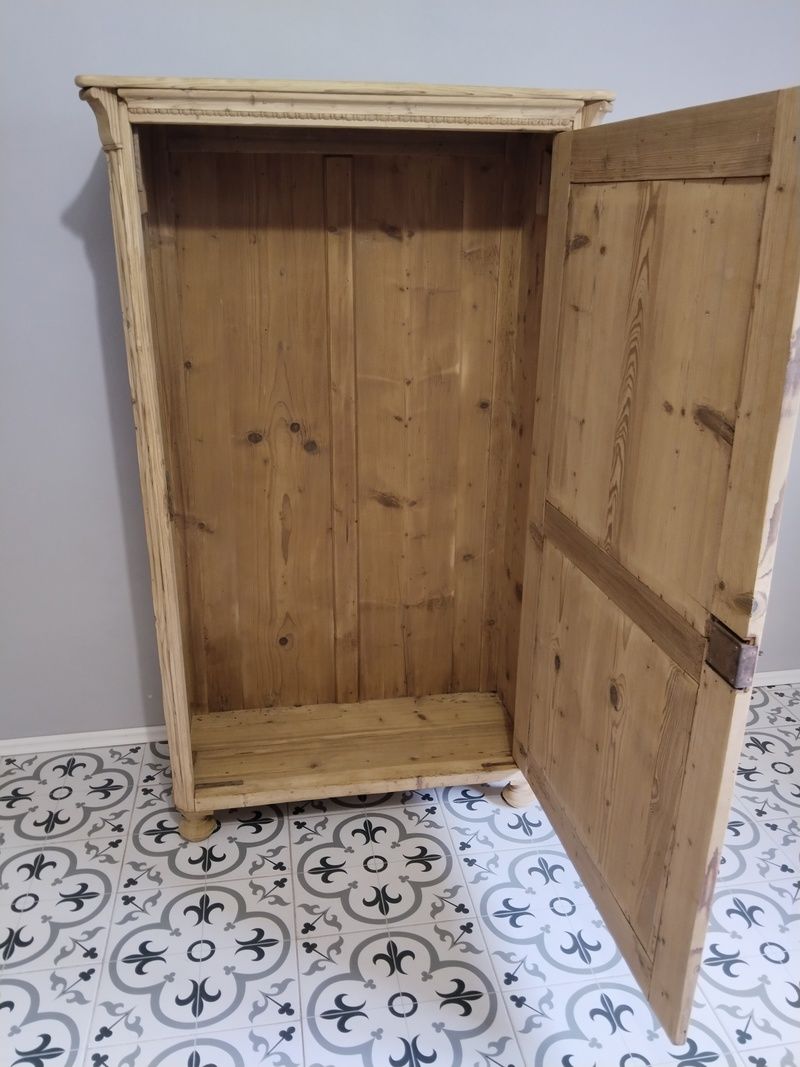 Skříň je olouhovaná , obroušená a zatím bez povrchové úpravy čisté dřevo . Rozměry v. 170 cm , š. 100 cm , h. 46 cm .