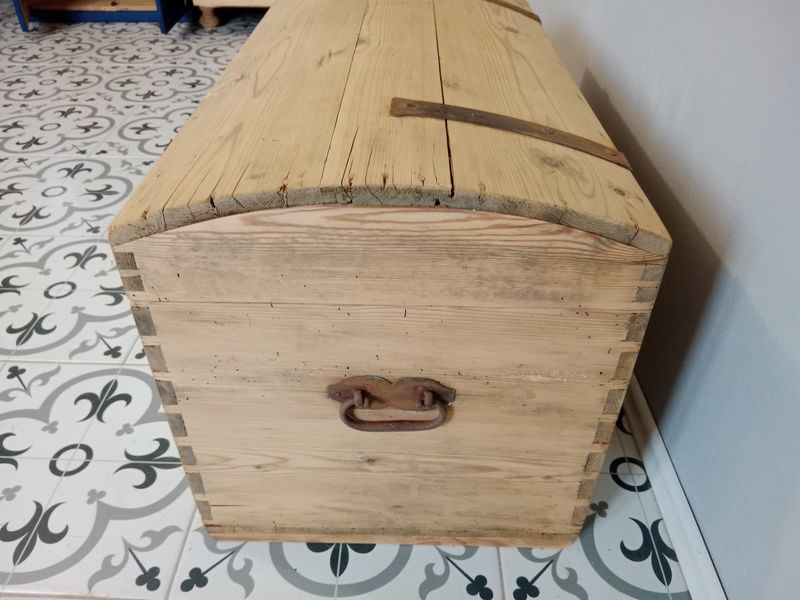 Starý kufr po renovaci. Kufr je olouhovaný, obroušený a zatím bez povrchové úpravy čisté dřevo. Rozměr d. 88 cm , h . 47 cm , v. 52 cm.