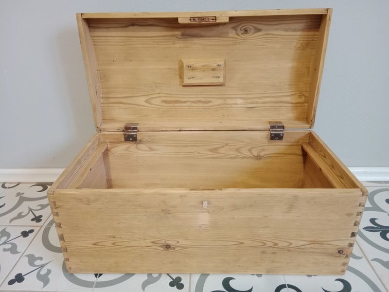Starý kufr po renovaci. Je olouhovaný, obroušený a zatím bez povrchové úpravy čisté dřevo. Rozměr cca 60 * 30 * 30 cm.