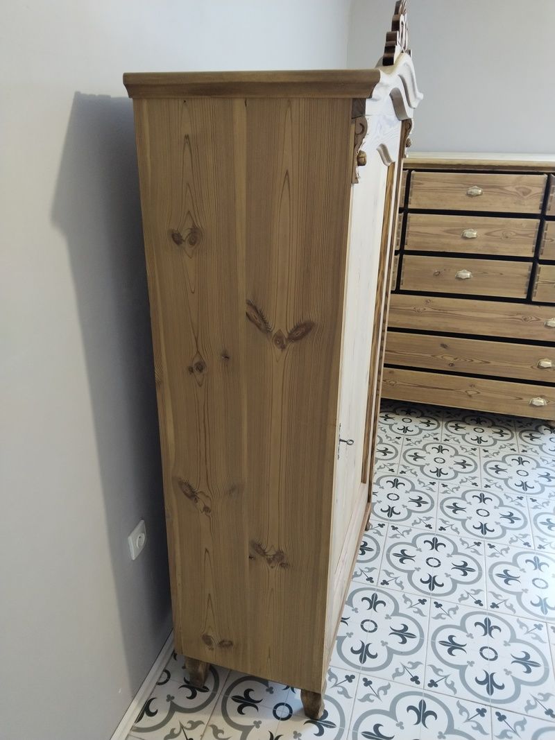 Skříň je olouhovaná , obroušená a zatím bez povrchové úpravy čisté dřevo . Rozměry v. 191 cm , š. 101 cm , h. 51 cm .