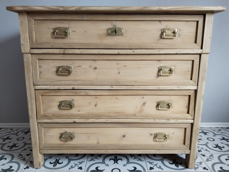 Krásná, stará, šuplíková komoda po renovaci. Je olouhovaná, obroušená a zatím bez povrchové úpravy čisté dřevo. Rozměry v. 97 cm, deska 110 * 56 cm. Funkční zámek s klíčem u horního šuplíku.
