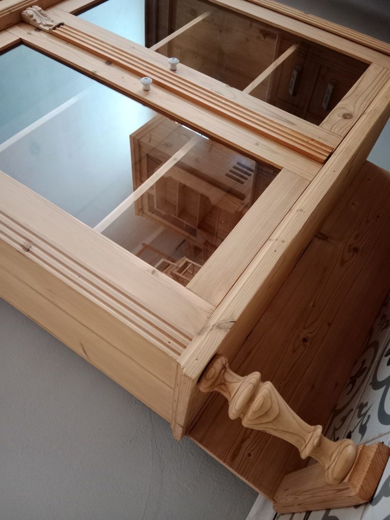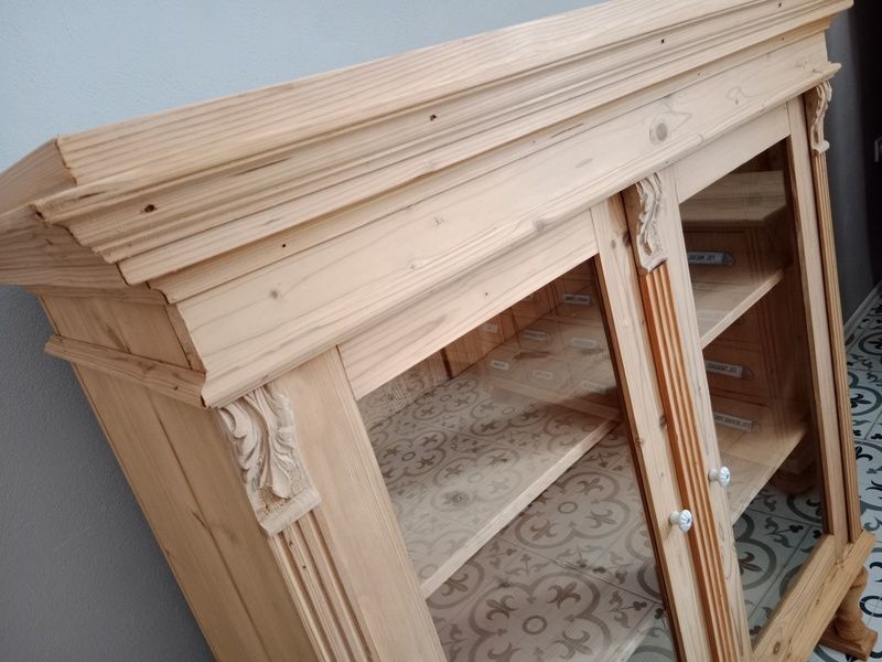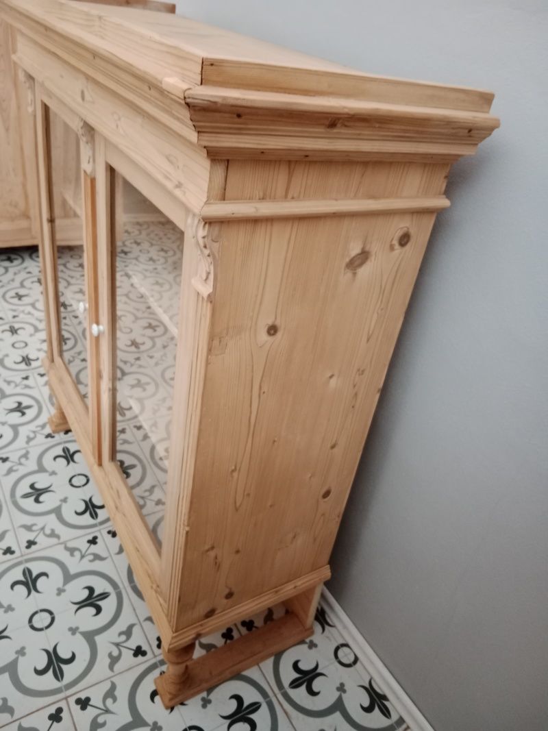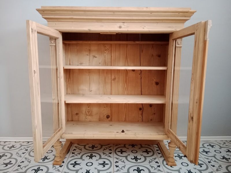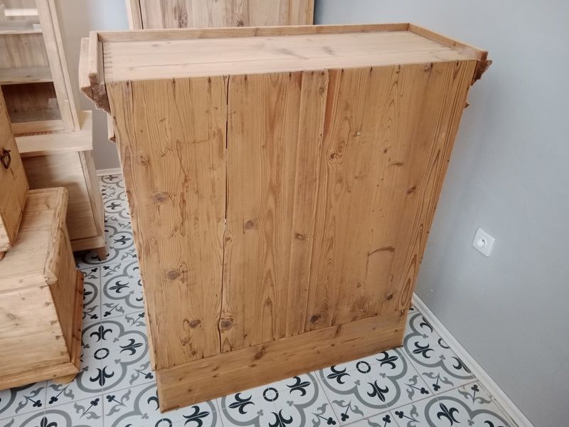 Stará skříňka po renovaci. Je olouhovaná, obroušená a zatím bez povrchové úpravy čisté dřevo. Rozměry v. 123 cm, š. 112 cm, h. 44 cm.